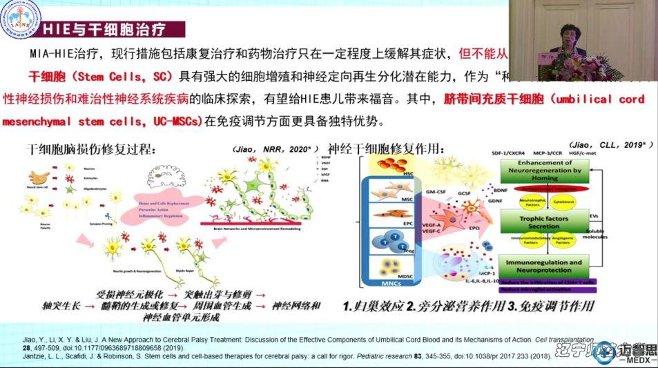 邹伟教授课题组长期以来一直与大连医科大学附属第一医院国家干细胞临床研究机构刘晶教授合作致力于干细胞治疗神经系统疾病的临床前研究。2017年刘晶教授为主编,邹伟教授为副主编的《干细胞临床研究质控体系的建设》由人民卫生出版社出版,目前作为国内干细胞领域内的主要参考书。作为大连干细胞与精准医学创新研究院特聘教授,邹老师代表研究团队向与会专家学者介绍了课题研究背景,基于首批国家卫健委备案项目《神经干细胞治疗小儿脑瘫》相关的临床前研究结果,从母体孕鼠免疫激活(MIA)模型的建立到临床级干细胞的制备,从给药途径的选择到利用脐带间充质干细胞(hUD-MSCs)治疗缺氧缺血性脑病(HIE)的有效性研究,重点讲解了一种新的蛋白PTBP-1参与hUD-MSCs 对MIA-HIE幼鼠脑损伤的修复作用及机制,发言获得与会专家的充分肯定。28日上午邹伟教授作为七位评委之一,参与线上举行的青年科学家论坛优秀奖评审工作。