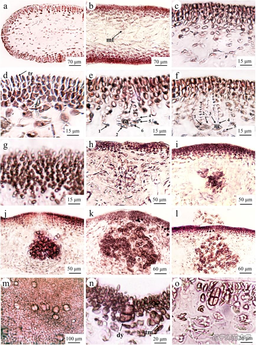 2020年3月5日,球友会王宏伟教授课题组基于形态观察、发育、生态习性和分子分析研究将青岛蜈蚣藻(Grateloupia qingdaoensis Li et Ding)进行重新鉴定。结构研究表明,青岛蜈蚣藻的果胞枝生殖枝丛和辅助枝生殖枝丛属于典型的Grateloupia 型(6cpb-5auxb type)。孢子早期发育过程属于“间接盘状体型”。青岛蜈蚣藻的生活史过程存在世代交替现象,并且为典型的“同形世代交替”。