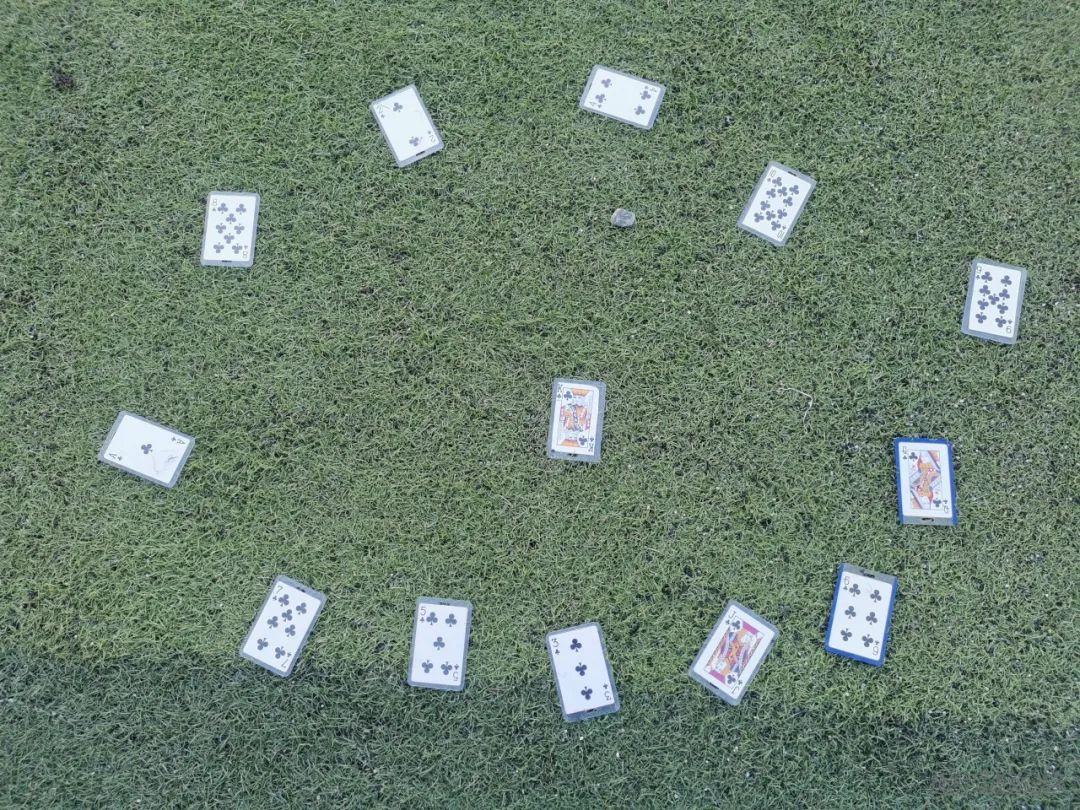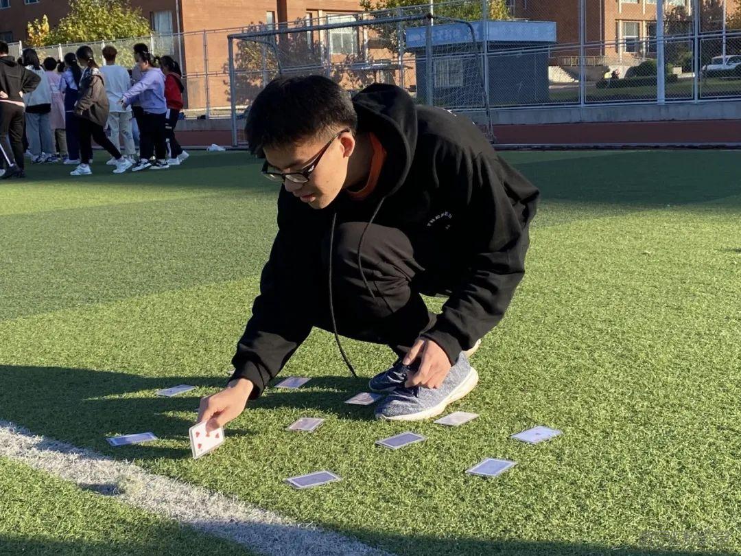 本次游戏为两组对抗制,每队成员选出一位“拦路虎”,猜拳拦截敌队。猜拳赢过拦路虎的同学可以上前翻牌,(初始扑克牌全部倒扣)每人每次只能翻一次,翻牌顺序仅能从A-K,若顺序出错,则必须重新将纸牌扣回。首先完成的一组即为获胜。