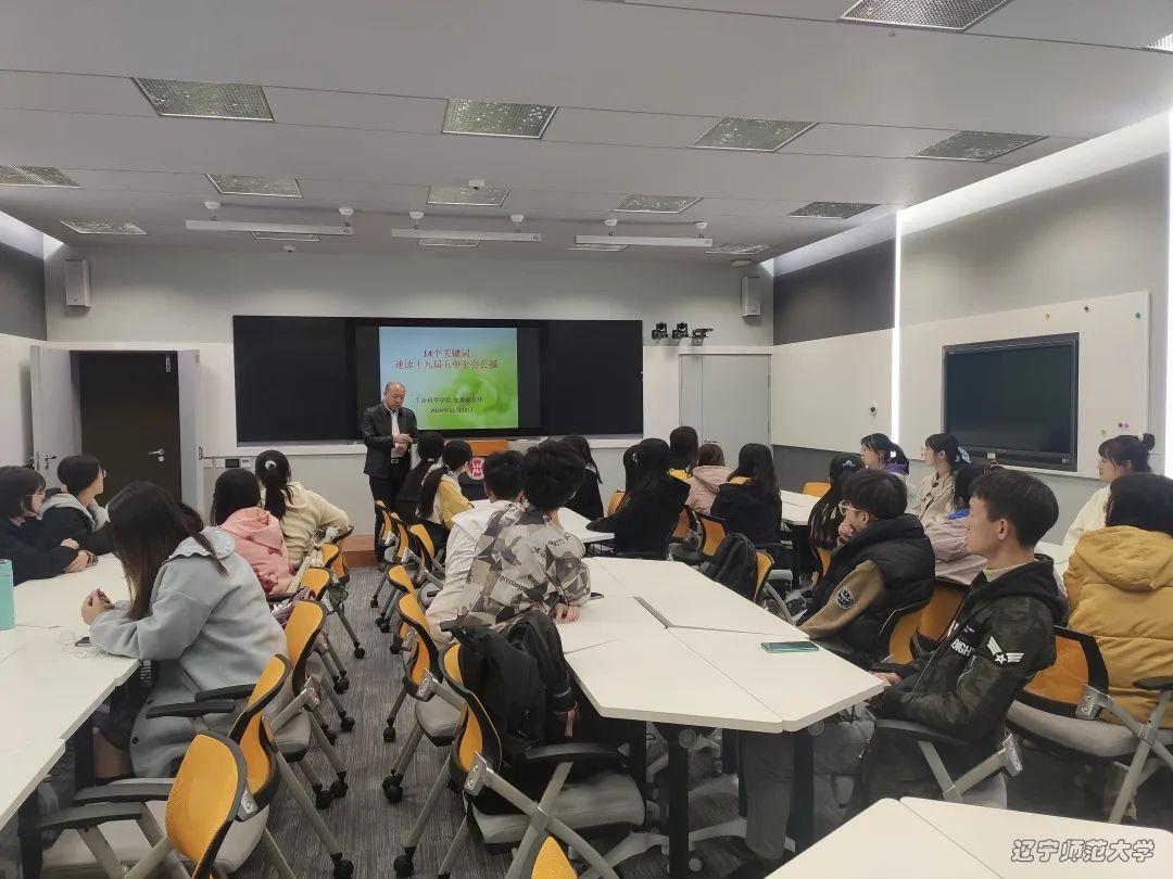 11月10日下午4:00,球友会党委书记兼副院长林忠伟老师走进2019级2班团支部,为同学们讲授了题为“14个关键词速读党的十九届五中全会公报”的专题团课。团课上,林老师为同学们解读“一次具有全局性、历史性意义的重要意义的重要会议”——党的十九届五中全会,并重点为同学们介绍以下几点:办好自己的事、科技自立自强、实体经济、新发展格局、有效市场和有为政府、新型工农城乡关系、以人为核心的新型城镇化、国家文化软实力、人与自然和谐共生的现代化、更高水平开放型经济新体制、共建共治共享的社会治理制度、更高水平的平安中国、建军一百年奋斗目标、坚持党的全面领导。
