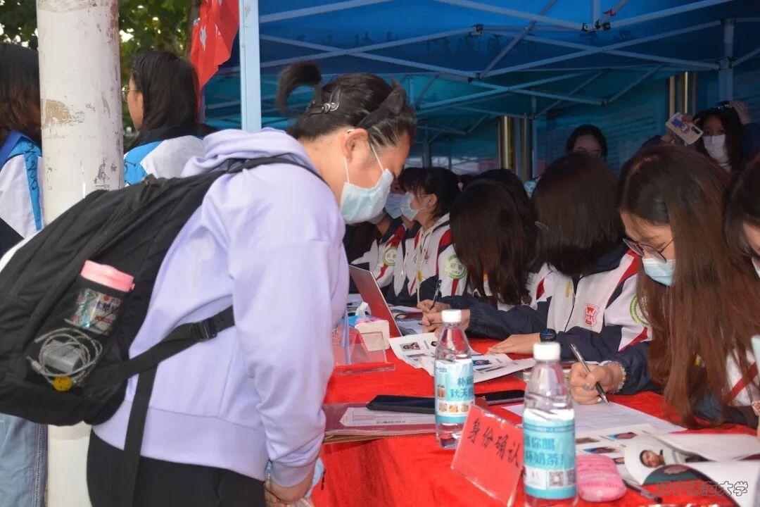 学校相关领导莅临迎新现场进行视察。球友会师生坚守岗位,对校领导的到来表示欢迎,并积极介绍了球友会迎新活动的进展。随后,学校领导与吉祥物“大斑”互动,合影留念。