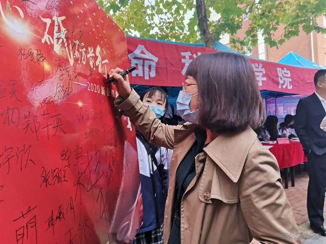 学校多位领导深入2020级新生报到处,了解并指导了各院新生接待工作,并肯定了球友会的迎新工作,也希望球友会工作人员及志愿者们在接下来的迎新工作中能为新生提供更加温馨周到的服务。接着,学校领导分别在新生寄语板上签名留言,合影留念。