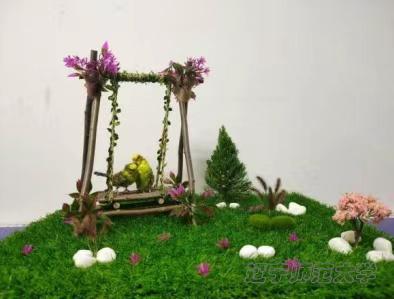 作品是两只玄凤鹦鹉,黄色的玄风站在房子顶上,灰色的玄风站在秋千上,它们在清晨以相似的形态互相对望,互相打招呼,以此来体现出鹦鹉的效鸣行为。这件作品,更多的是想要和大家科普这种效鸣行为,呼吁大家以更科学的方式喜爱鸟类、爱护鸟类,一起创建和平友爱的美好家园。