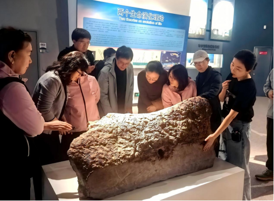 教职工们首先来到了被誉为“中国古生物摇篮”之一的辽宁古生物博物馆。馆内珍藏的举世闻名的“赫氏近鸟龙”、“辽宁古果”等珍贵化石,为老师们呈现了一部波澜壮阔的地球生命演化史诗。作为生命科学领域的研究者和教育者,大家在熟悉的古生物标本前倍感亲切,纷纷结合自己的专业背景,就生物分类、演化机制、环境变迁等话题展开了热烈讨论。逼真的复原场景和先进的展陈技术,让大家仿佛进行了一场穿越亿年的时空旅行,从宏观上加深了对生命起源与演化的理解,也为自己所从事的教学与科研工作汲取了新的灵感。