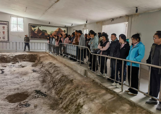 下午,参观队伍移步至沈阳新乐遗址博物馆,这里将大家从遥远的史前生物世界带入了沈阳地区早期人类文明的现场。新乐遗址展示了距今约7200年的新石器时代母系氏族社会聚落面貌。教职工们仔细观看了出土的炭化木雕艺术品(太阳鸟)、磨制石器、陶器以及半地穴式房址,深刻感受到了古代先民的智慧与创造力。从生命演化的宏观视角切换到人类文明起源的微观考据,这一跨越引发了老师们关于“人类作为特殊生命群体如何适应并改造环境”的思考,为生命科学的人文社科交叉研究提供了宝贵的实证素材。