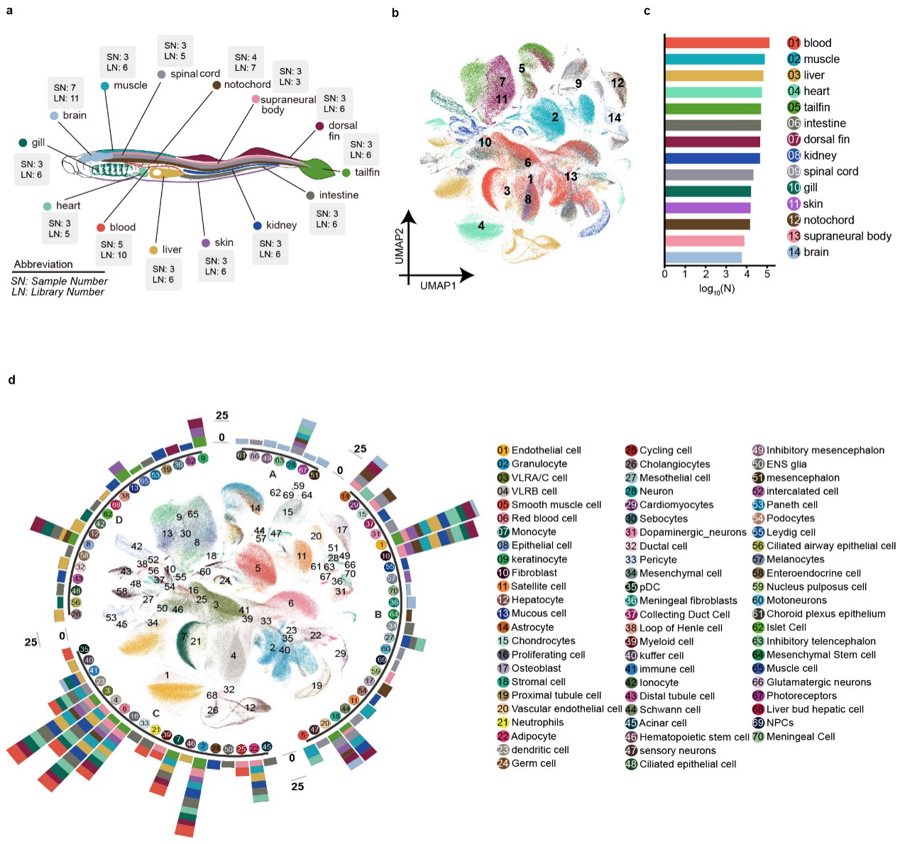 图1雷氏七鳃鳗的全组织单细胞图谱