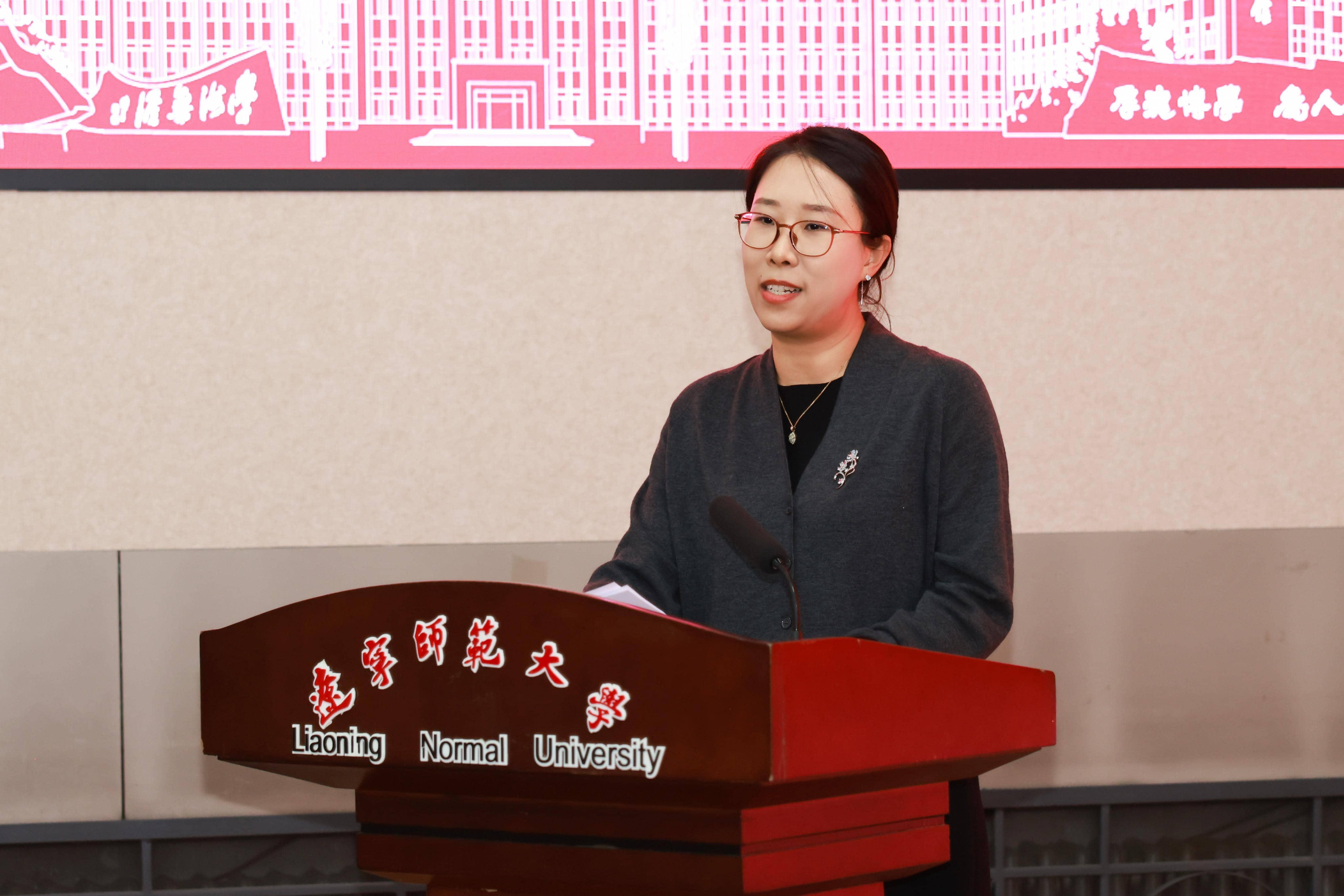 仪式现场,球友会朱婷副教授作为青年骨干人才代表登台发言。她结合自身在教学科研中的成长经历与实践感悟,分享了对青年员工职业发展的思考,畅谈了未来深耕教育领域的规划与愿景。发言情真意切、内涵深刻,既彰显了对“辽师学者”这份荣誉与责任的深刻体悟,更传递出新时代高校员工对教育事业的赤诚与担当。