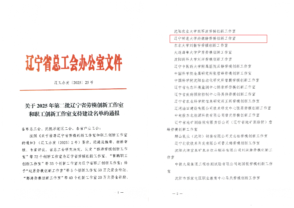 近日,辽宁省总工会正式下发《关于2025年第二批辽宁省劳模创新工作室和职工创新工作室支持建设名单的通报》(辽工办发〔2025〕25号),球友会尚德静职工创新工作室凭借扎实的科研积累与突出的创新成效,成功获评“辽宁省劳模创新工作室”。这一荣誉不仅是对工作室领衔人尚德静及团队创新能力的高度肯定,更是我省总工会对球友会深耕科研服务辽宁振兴的充分认可,为学校高质量发展再添闪亮名片。